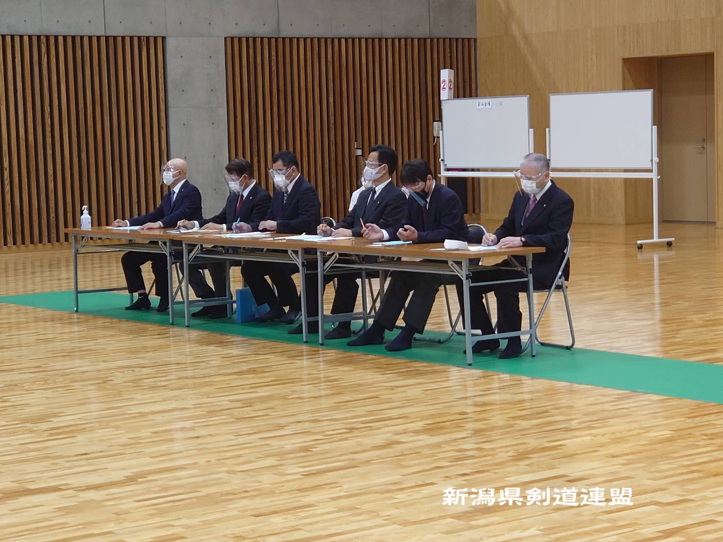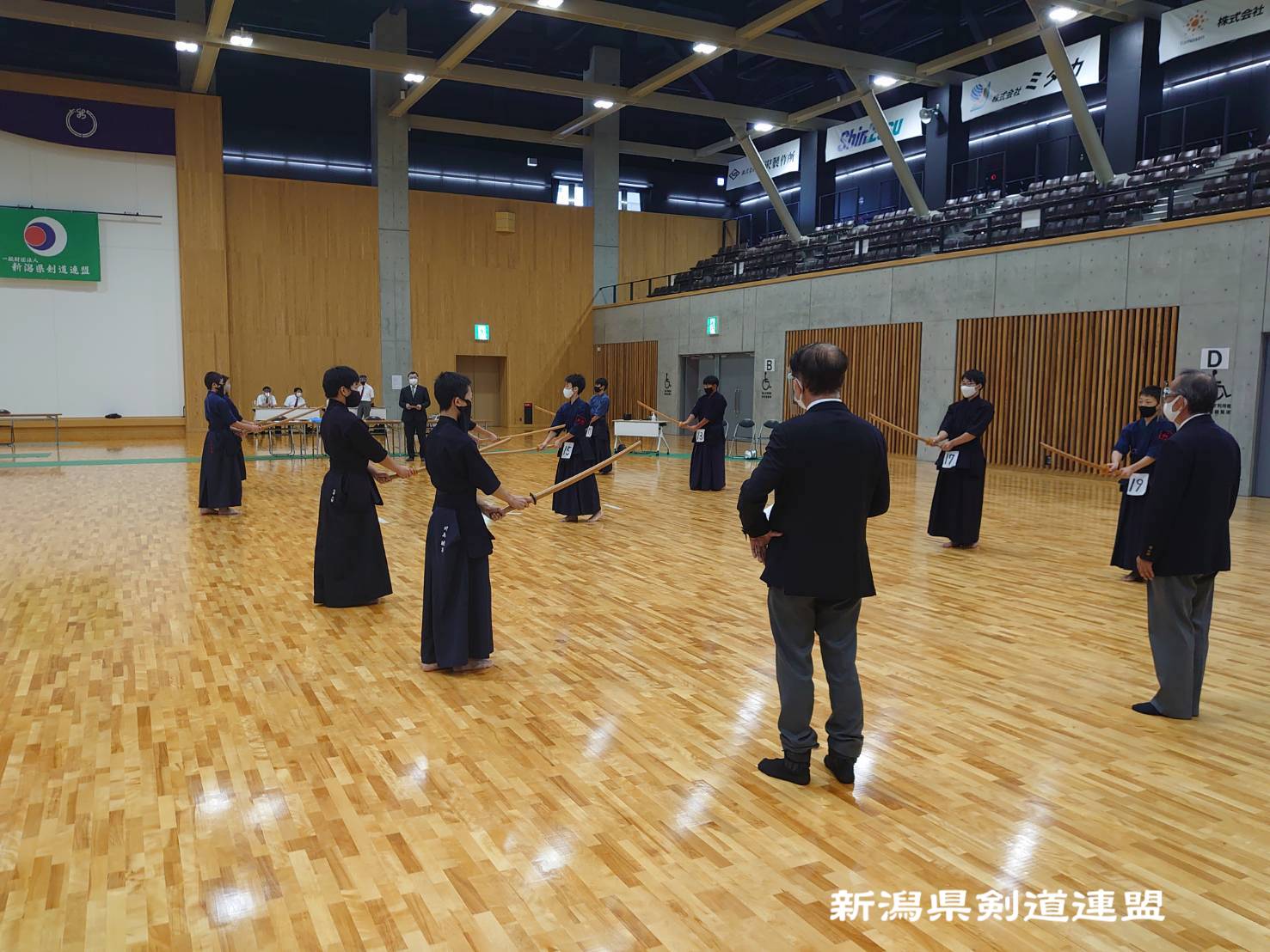勢いを増してきた新コロナウイルス感染症拡大予防を図り、昇段審査会を全剣連のガイドライン及び上越市剣道連盟ガイドインに沿って、謙信公武道館にて開催致しました。