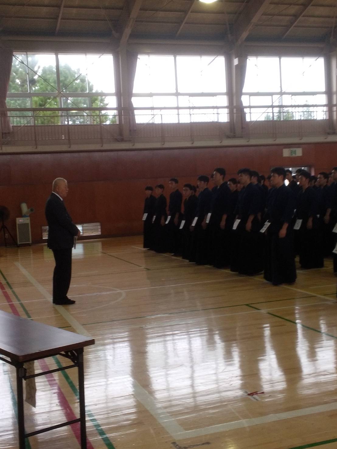 三段については2名でしたが、時間をあけて2回の立ち合いをしていただきましたが、充実した気勢と姿勢、打突の機会共に素晴らしく評価され昇段と成りました。大半が今春警察官として入校され、県民の安心と安全の為に剣道の修行に励まれ良き指導者に教わり、昇段されたことに敬意を表したいと思います。