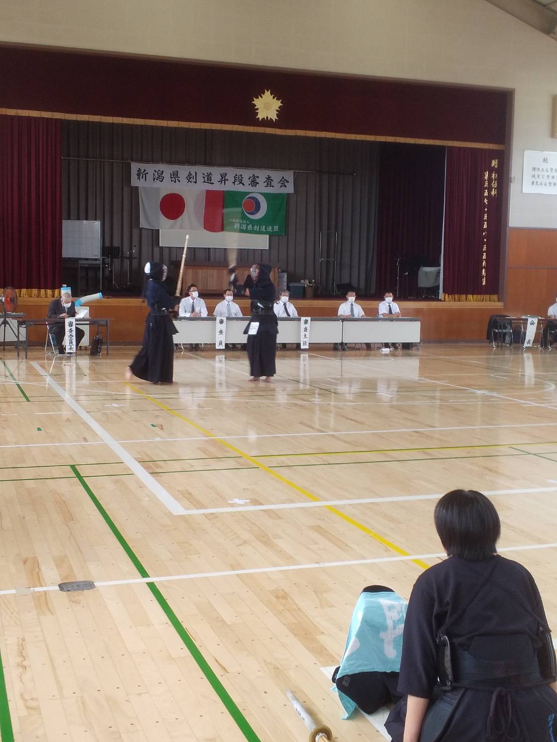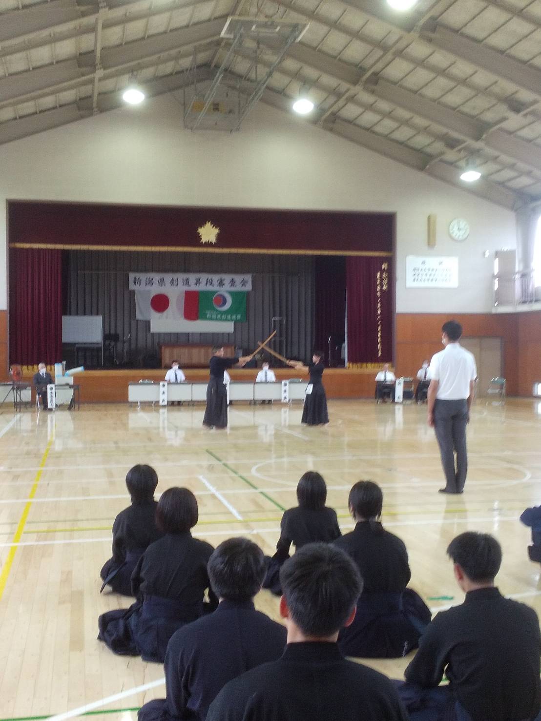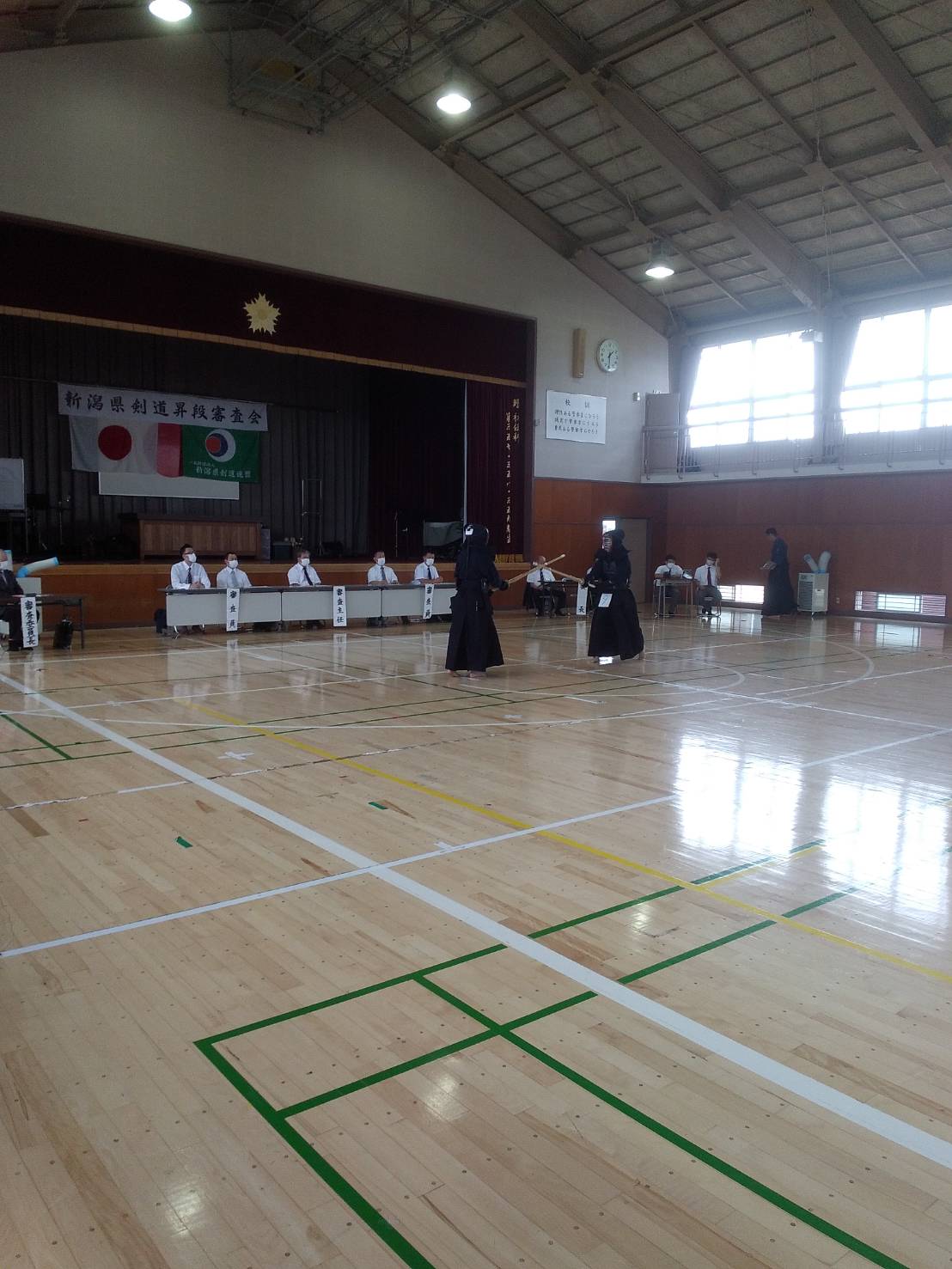 県警察剣道連盟主管に於ける新潟県剣道連盟の昇段審査会初段から三段まで行われ初段53名・二段9名・三段2名の受審者がありました、初、二段につきましては迫力満点で気力も充分で全員昇段と成りました。