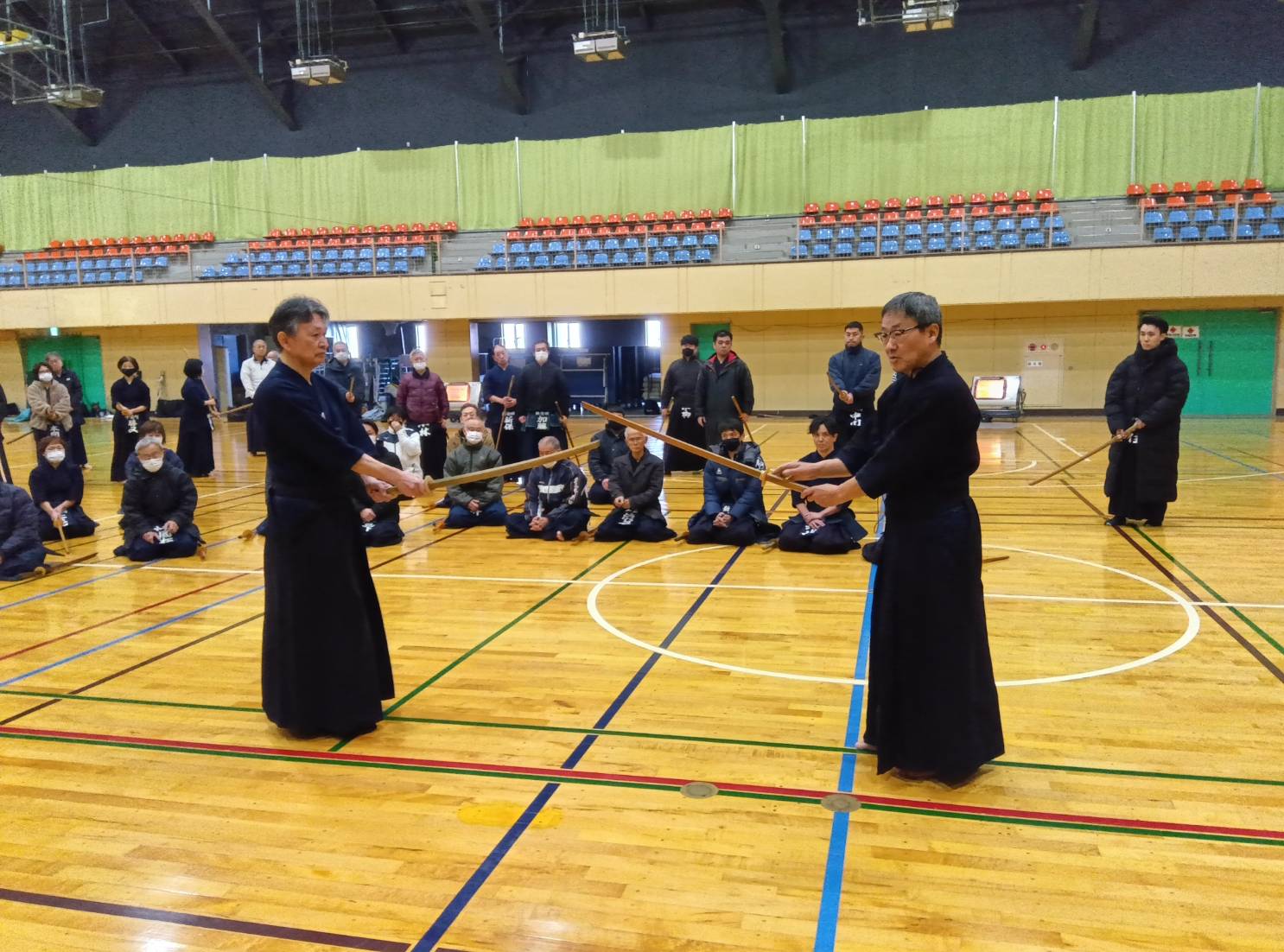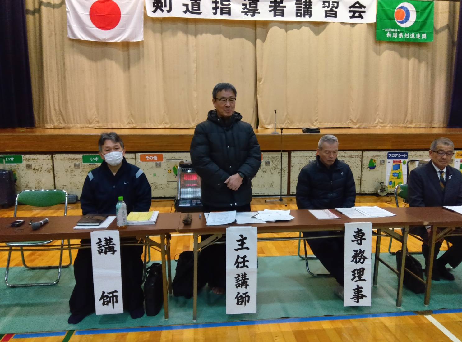 続いて高橋から、剣道修錬における日本剣道形の重要性とその取り組み方についての講話をさせていただきました。併せて、大日本帝国剣道形を制定するにあたってその中心的な役割を果たされた根岸信五郎先生が長岡藩出身であること、根岸信五郎先生が創設された有信館の長谷川壽範士九段や後に三羽烏と称された中島五郎蔵範士九段もまた新潟県出身であることから、もっと本県は日本剣道形の修錬に重点的に取り組むべきである(本県の特性・独自性の創出)というお話をさせていただきました。
